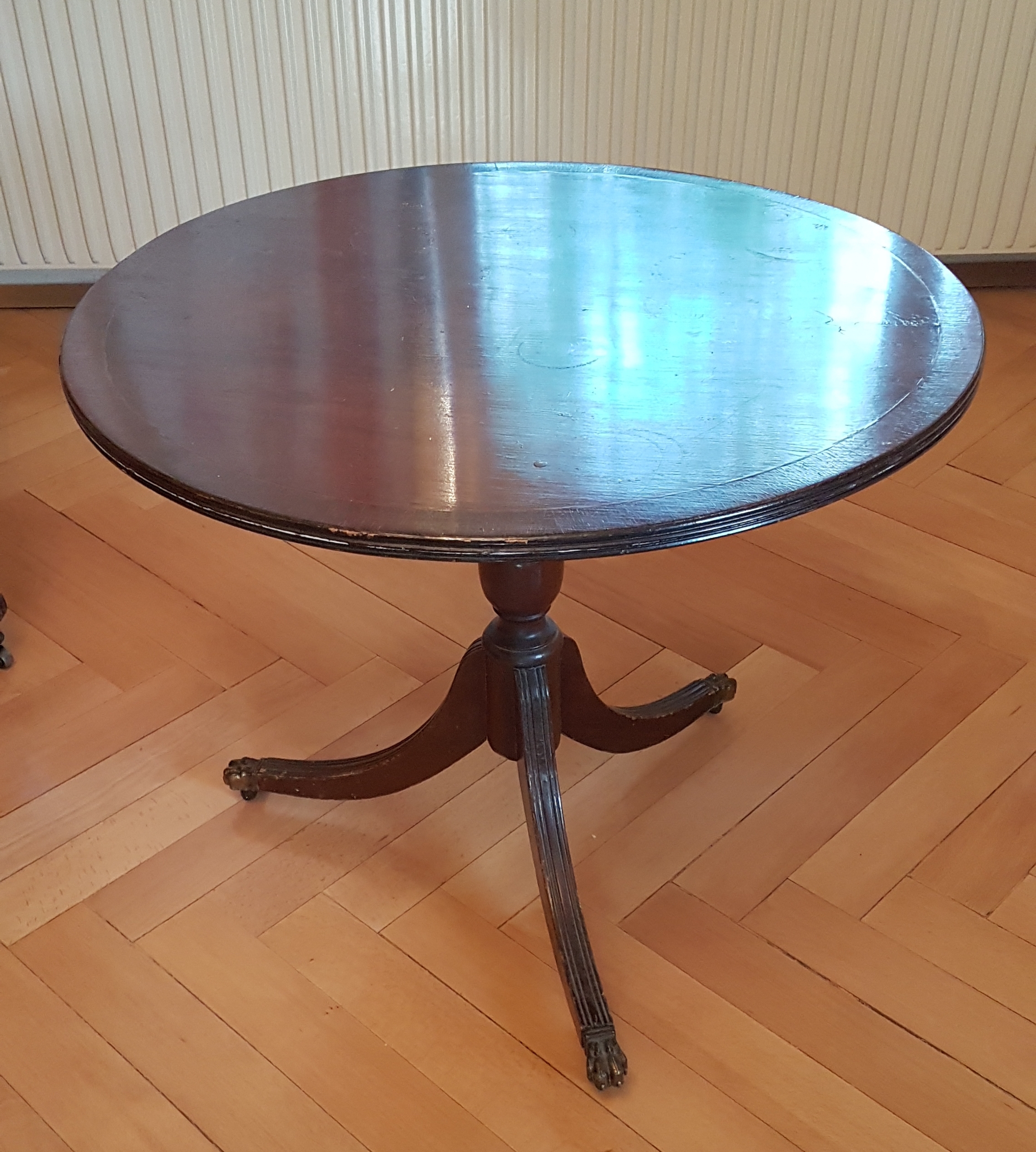 Beistelltisch aus Mahagoni-Holz mit Löwenfüssen, Höhe: 54 cm , Durchmesser: 63 cm