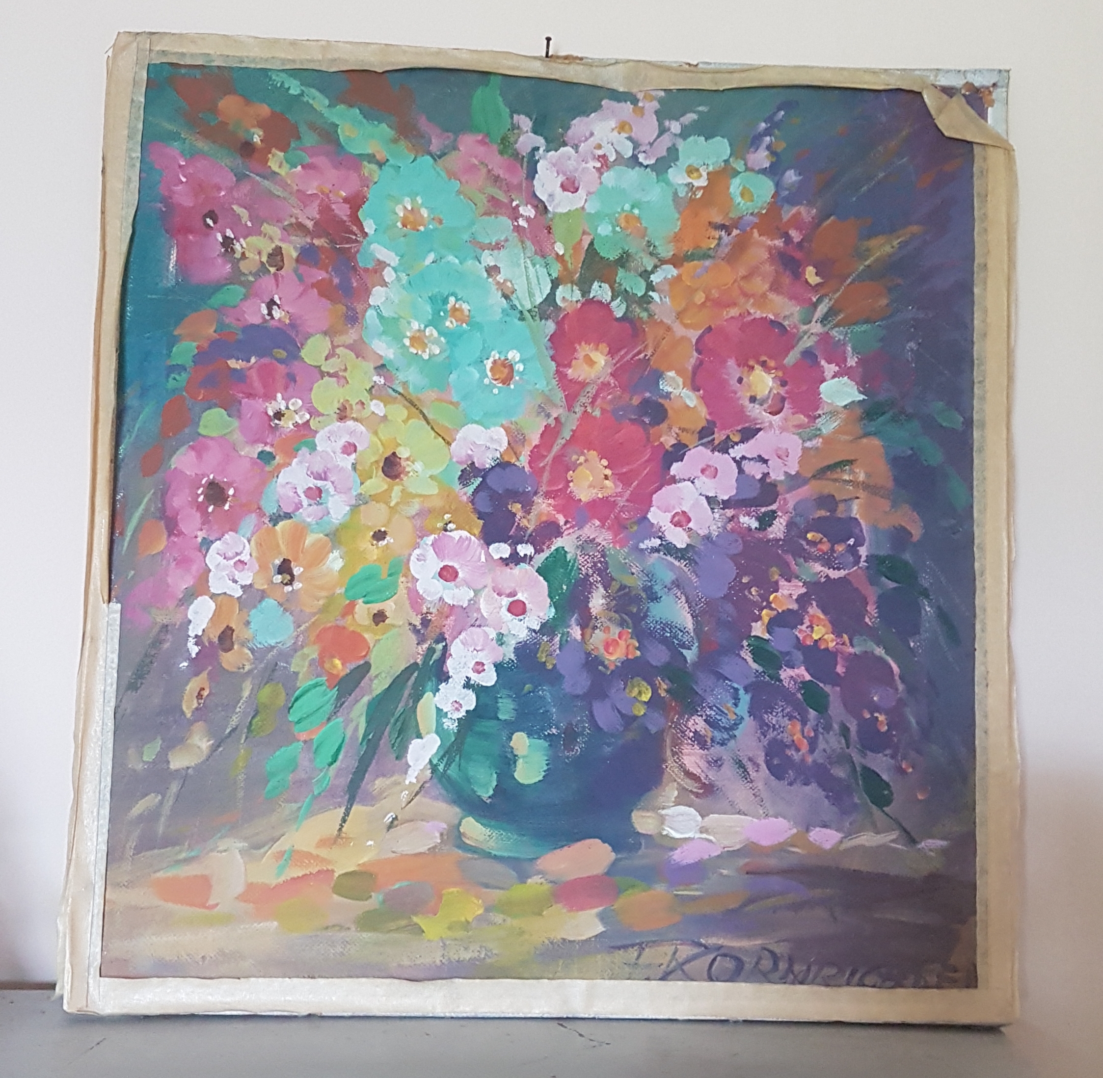 F. Kornbichler, Blumenstilleben, Öl auf Leinwand, signiert unten rechts.