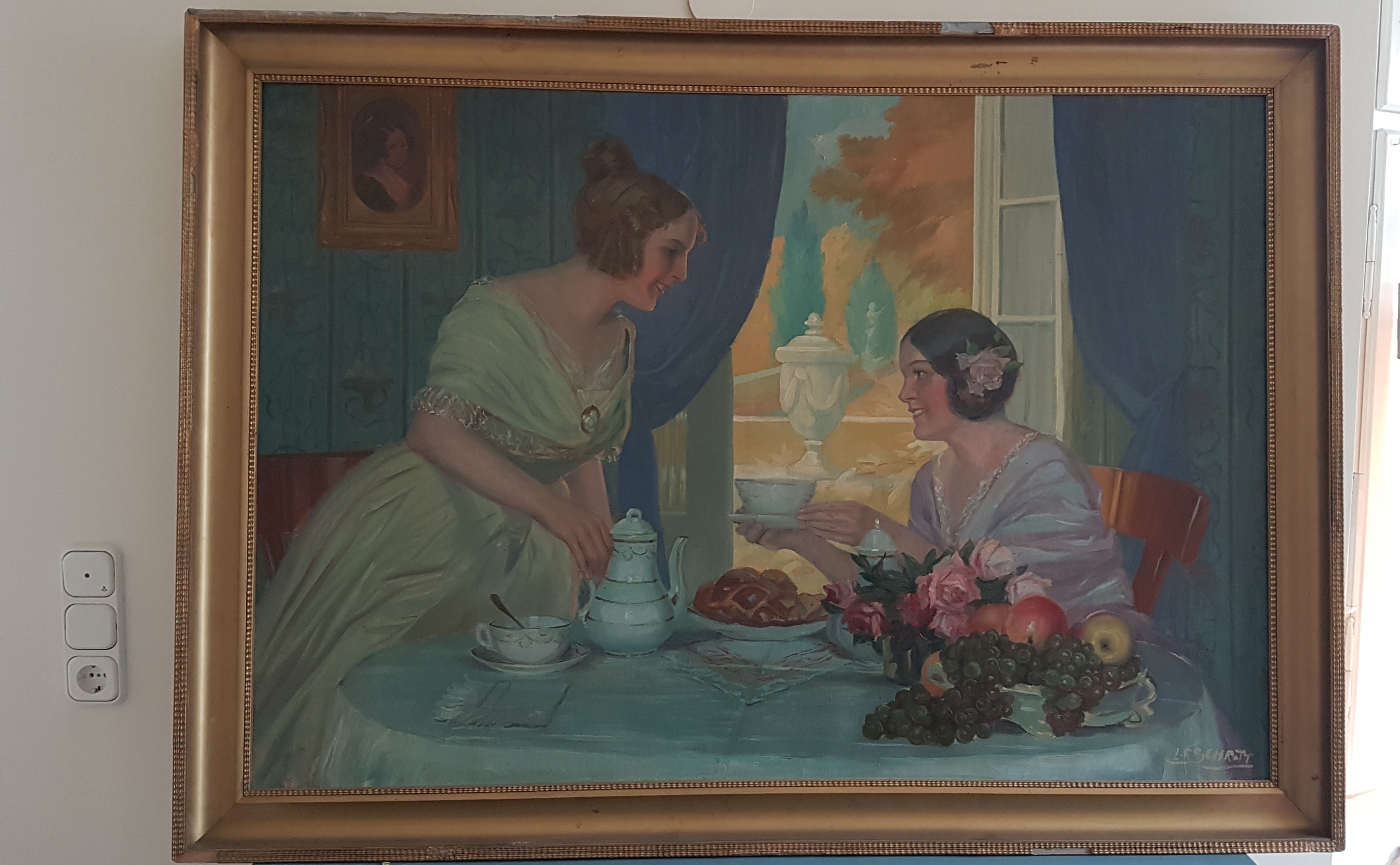 Bild von L.F. Schratt, Höhe: 104 cm , Breite: 145 cm , Bild in gutem Zustand, Rahmen reparatur bedürftig