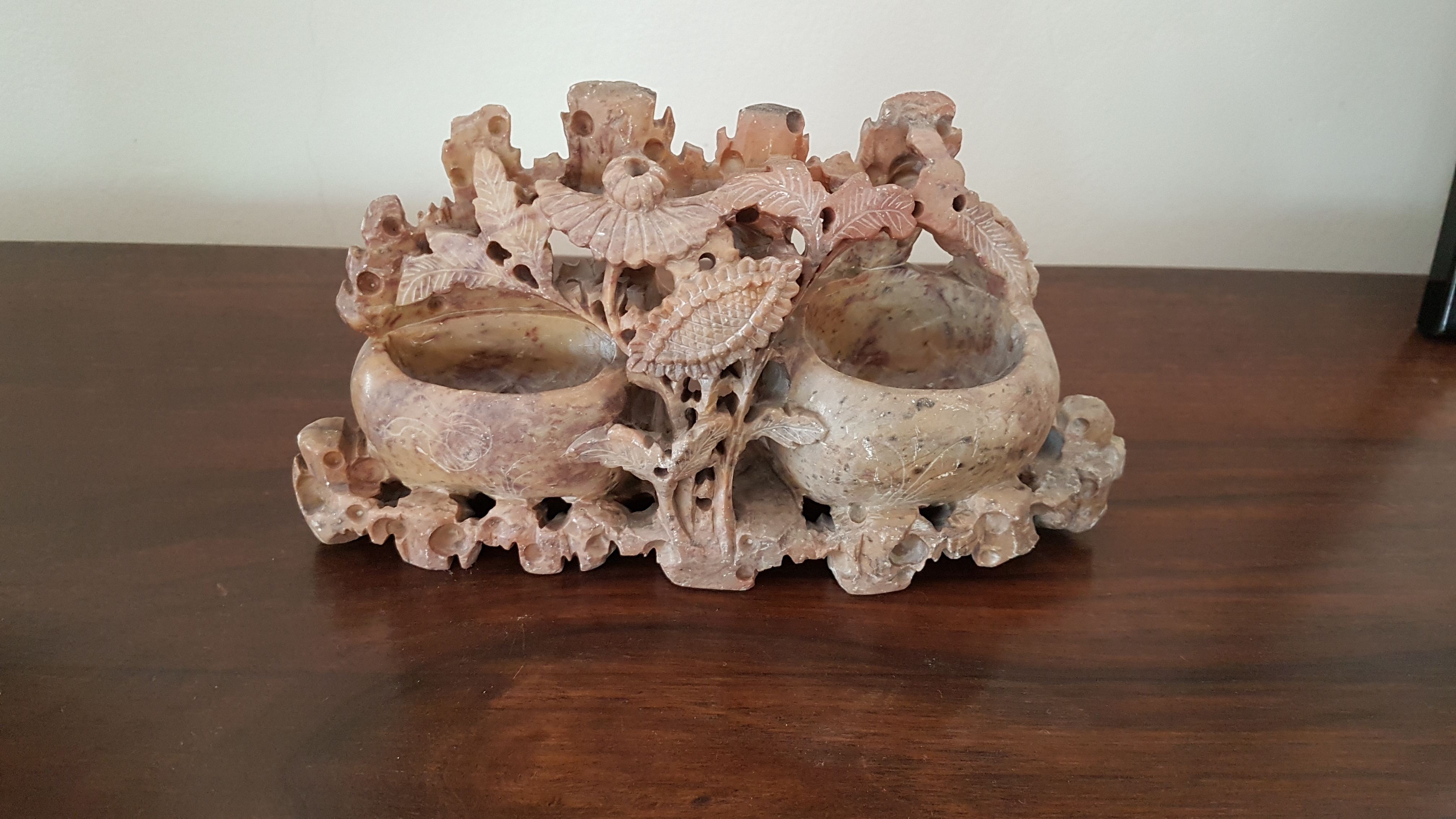 Salz und Pfeffer Gefäss, chinesisch, Speckstein geschnitzt